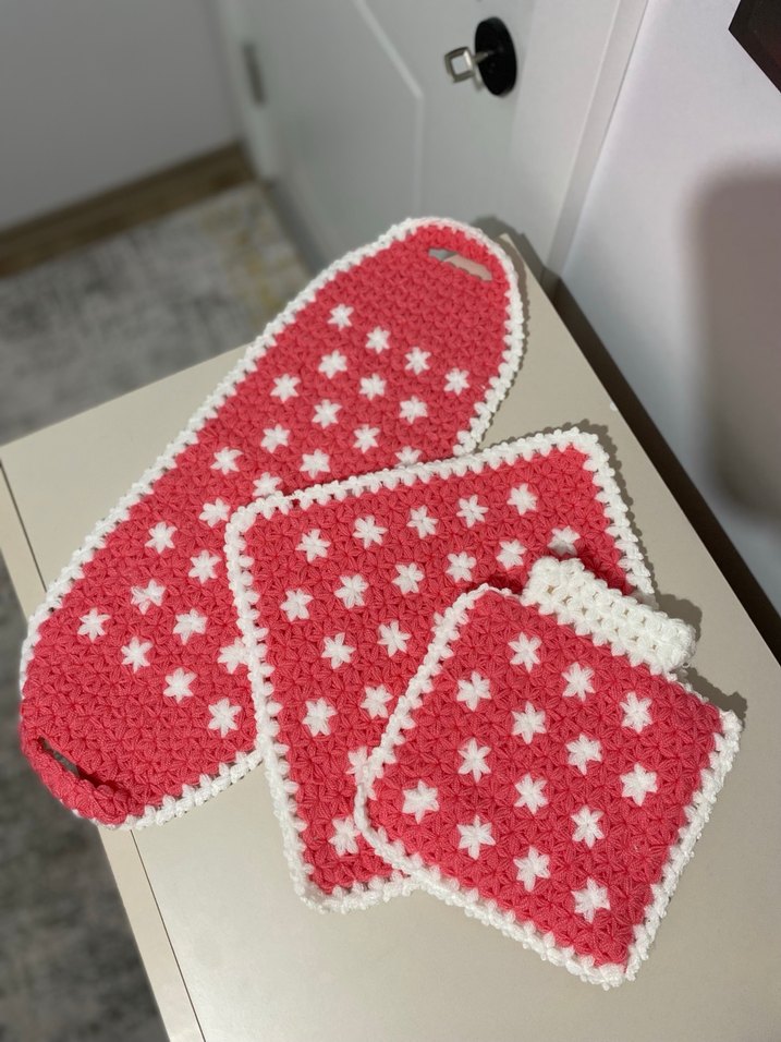 Renkli pembe ve beyaz yıldız desenli, yumuşak dokulu el örgüsü çeyizlik lif seti ✨