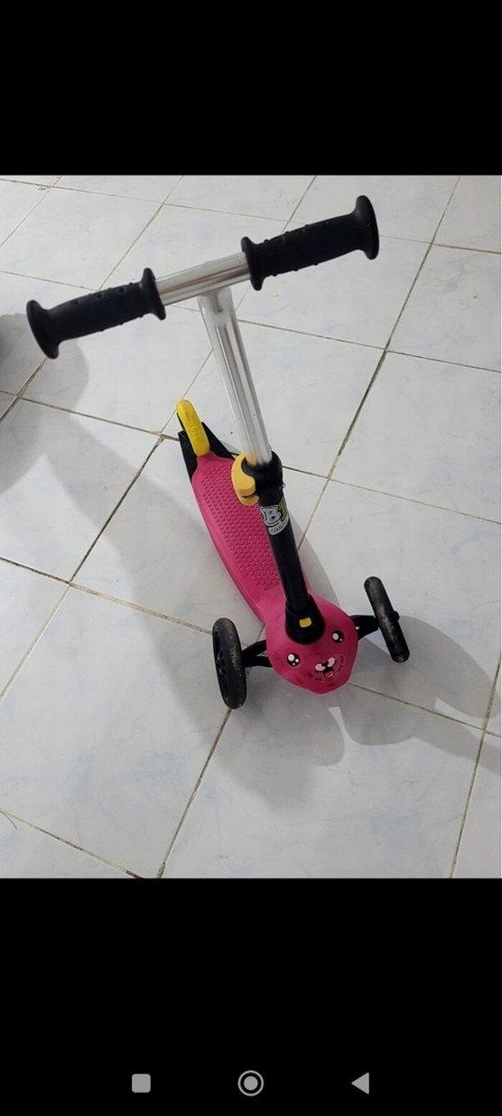 Pembe renkli çocuk scooter'ı, sağlam gidon ve geniş ayaklık ile dengeli sürüş sağlar. Üç tekerlekli yapısıyla kolay kullanılır. 2-4 yaş B1 model Pembe plastiğinde kırık var kullanıma engel değil onu ayrıca 100 TL ye alabilirsiniz bu nedenle fiyatını uygun tutuyorum #decathlon #scooter #kazak #kaban #ceket #mont #bot #sweatshirt #sporayakkabi #kirtasiye #fincan #vintage #antika #kask