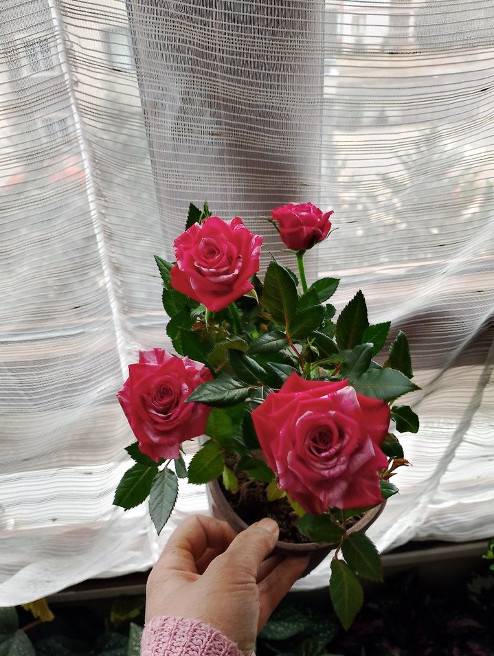 Pembe renkli dekoratif vazo benekli gül