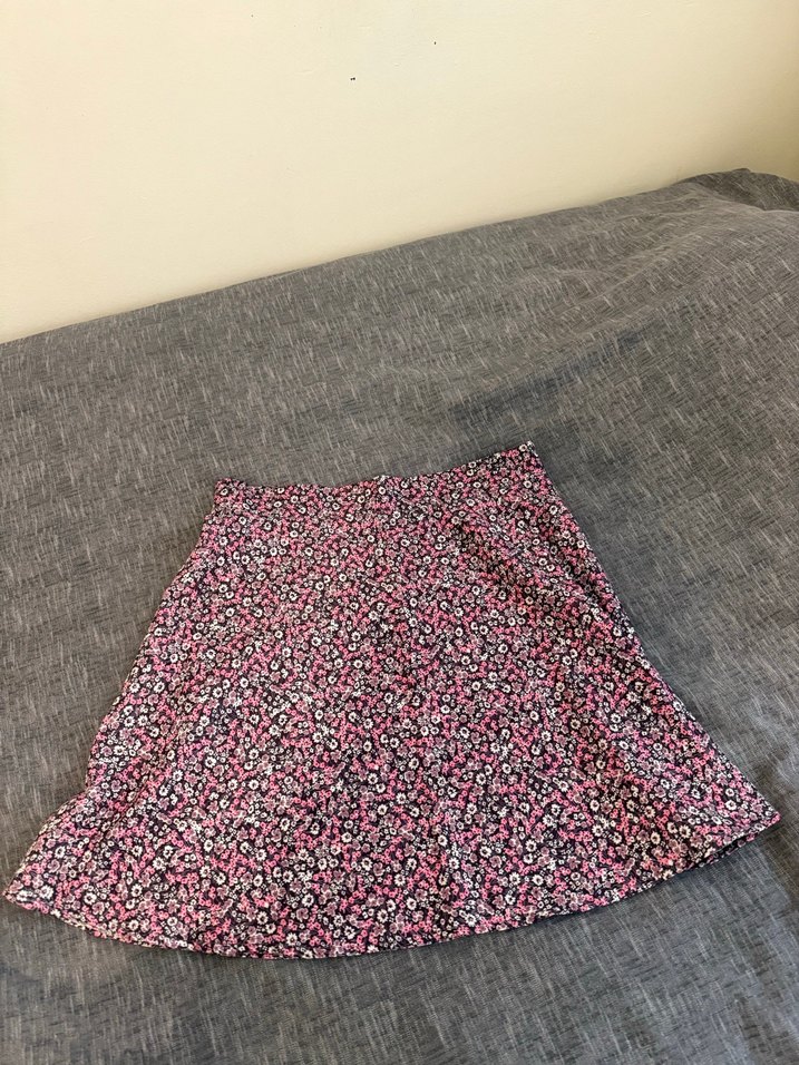 Pembe renkte, bol kesim ve fırfırlı detaylara sahip mini etek. Yumuşak sentetik kumaştan üretilmiş, dış mekan kullanımı için uygun.