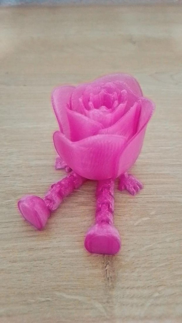 Canlı pembe renkte, minik bacakları olan gül şeklinde küçük bir figür. hareketli bacakları.