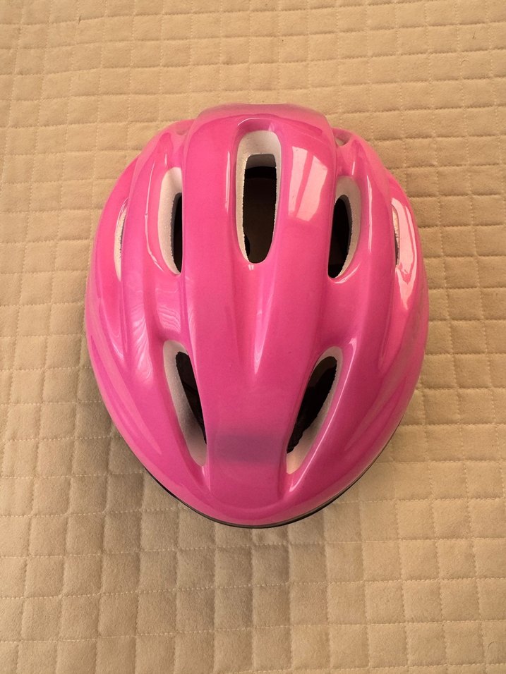 Decathlon marka, Hiç kullanılmamış,Pembe renkli motosiklet kaskı, kemerli tasarıma ve havalandırma deliklerine sahiptir. Düz ve minimalist görünümlüdür. Dizlik ve dirseklik hiç kullanılmamış