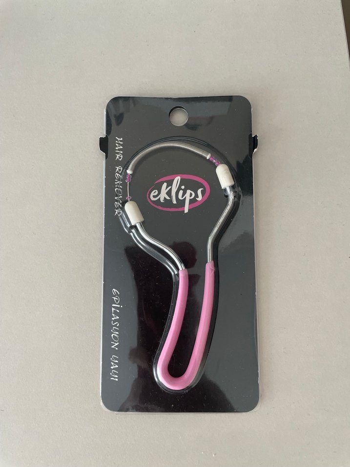 Pembe renkte, renkli tasarıma sahip eklips kirpik kıvırıcı. Kolay kullanım için konforlu sapları ve saç temizleme özelliği bulunur.