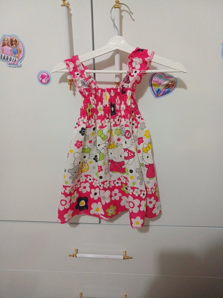 Pembe renkli, baskılı ve fırfırlı detaylara sahip, straplez yaka ve sentetik yumuşak kumaştan yapılmış kız çocuk elbisesi. Bohem tarzı için uygun. 12 18 aya uyumlu yazlık elbise