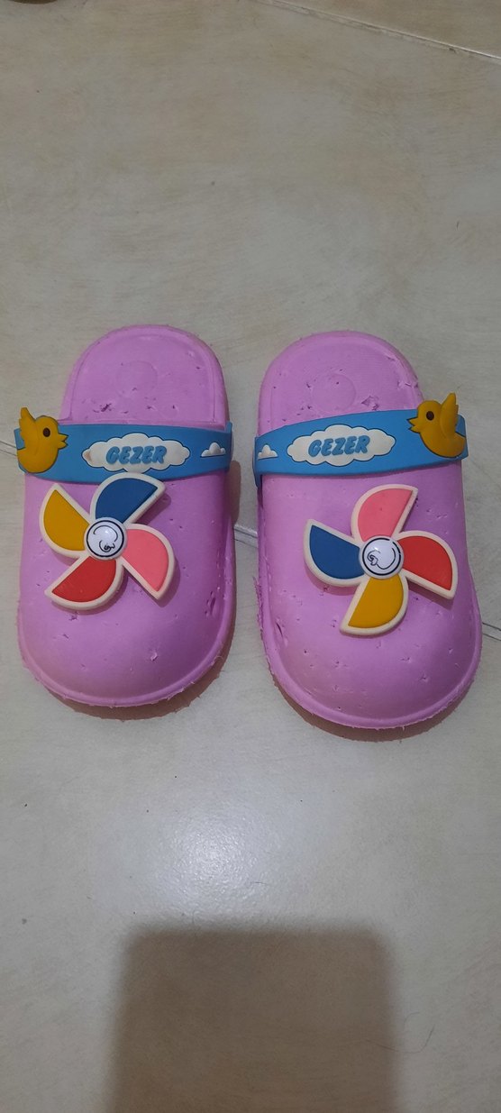 Pastel renkte önündeki detay elle dönebilir çevrilebilir kauçuk kız çocuk terlikleri. Bohem ve retro tarzına uygun. Kayışlarda "GEZER" markası bulunur.