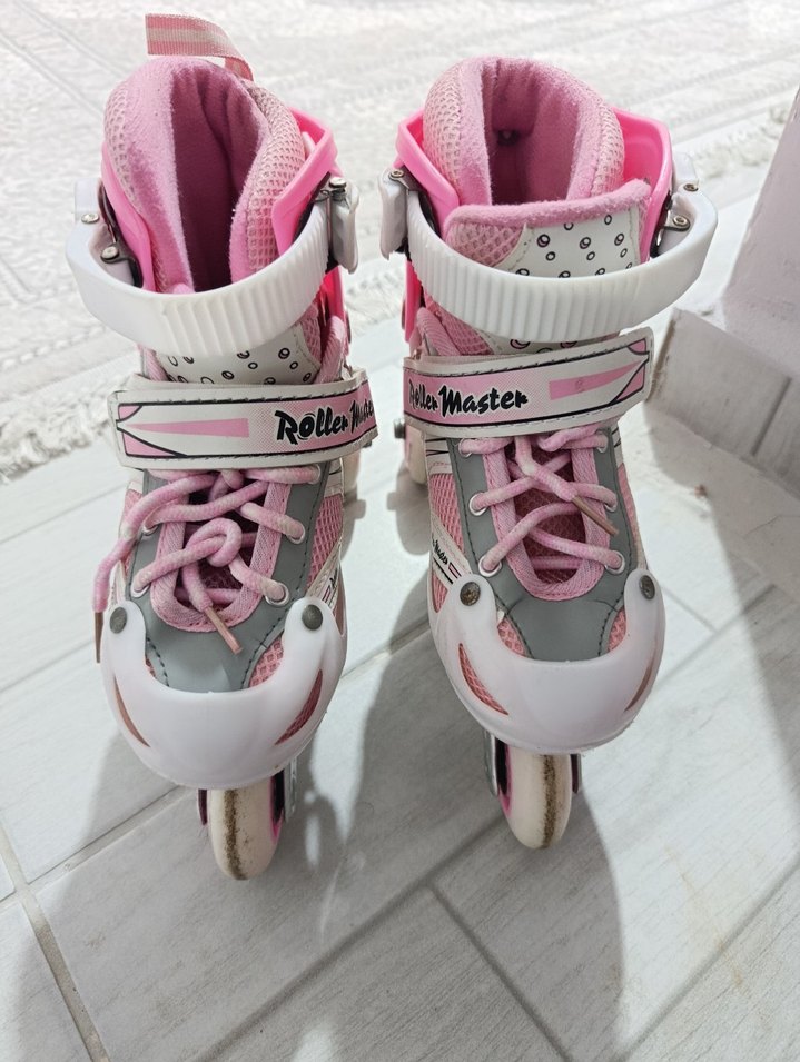 Pastel pembe renkte, baskılı ve fırfırlı kız çocuk paten ayakkabısı. Kauçuk malzemeden üretilmiş, athleisure ve street wear stilinde. 'Rolle' yazılı kayışlarla güvenli kullanım sağlar. ⛸️