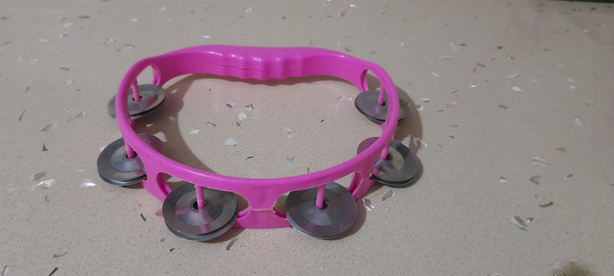 Pembe renkte elde tutmalı, metal zil sesleri çıkaran müzikli oyuncak zil. Rahat tutuş ve canlı renklere sahiptir.