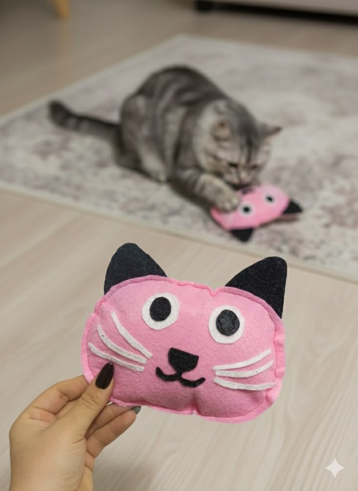Siyah kulaklı, beyaz bıyıklı pembe renkli yumuşak peluş kedi oyuncak. içi sadece kedi otu ve SIFIR elyaf ile doludur dileyen açıp bakabilir öyle olmadığı takdirde geri iade alırım her şeyi sıfırdır. (İLK 10 MÜŞTERİMİZE YANINDA HEDİYE İLE. )