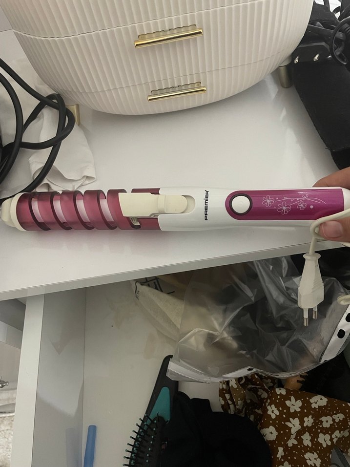 Pembe renkli saç maşası, spiral varili ve basit açma/kapama düğmesi ile saçları şekillendirir. Renkli tasarıma ve güç fişine sahiptir. ♀️