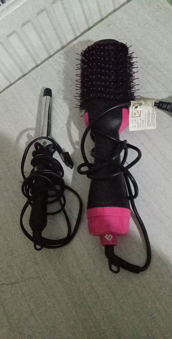 Pembe renkli saç fırçası ve maşadan oluşan saç şekillendirici set, kullanımı kolay kablolu tasarıma sahiptir. çok az kullanıldı farklı bir markaya geçtiğim için iksini birlikte uyguna bırakıyorum alana hayırlı olsun FİYAT 450TL