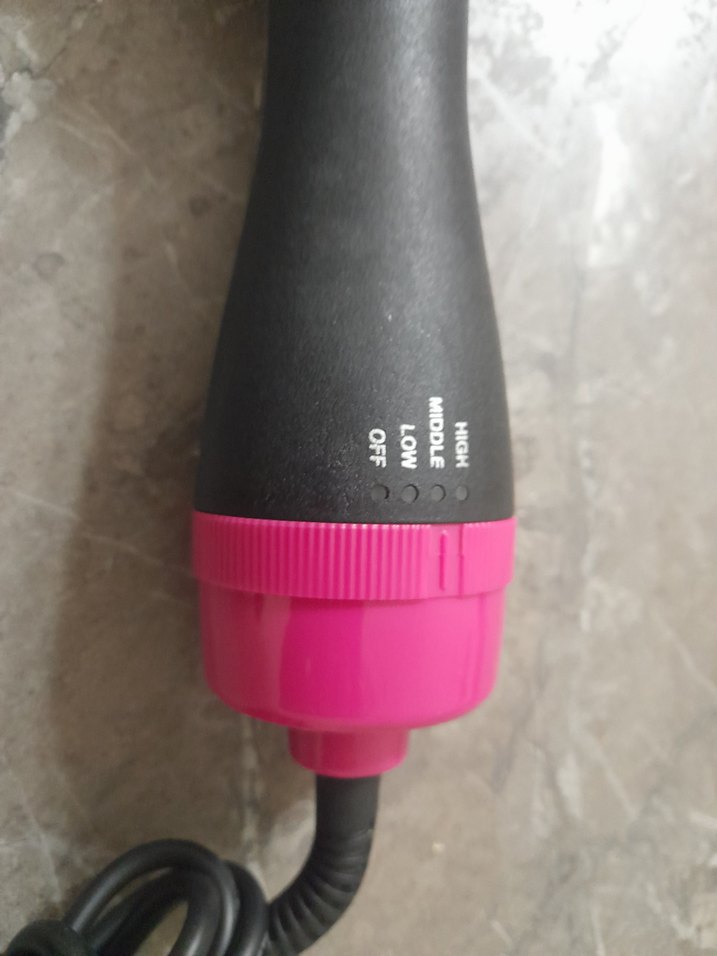 Pembe renkli saç şekillendirici, kapalı, düşük, orta ve yüksek ısı ayarlarıyla çeşitli şekillendirme seçenekleri sunar.