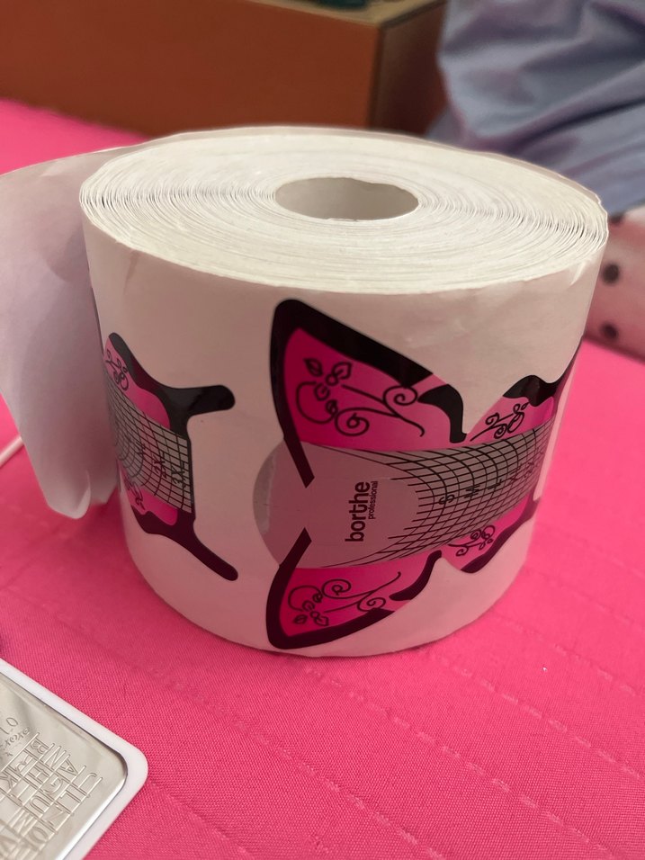 Pembe renkli, çiçek desenli tırnak şekillendirme ve uzatma için form şablonları.