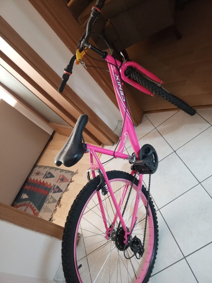 Pembe renkli üç tekerlekli bisiklet, sağlam yapısı ve renkli tasarımıyla genç sürücüler için uygundur. Rahat oturma yeri ve dayanıklı lastiklere sahiptir.