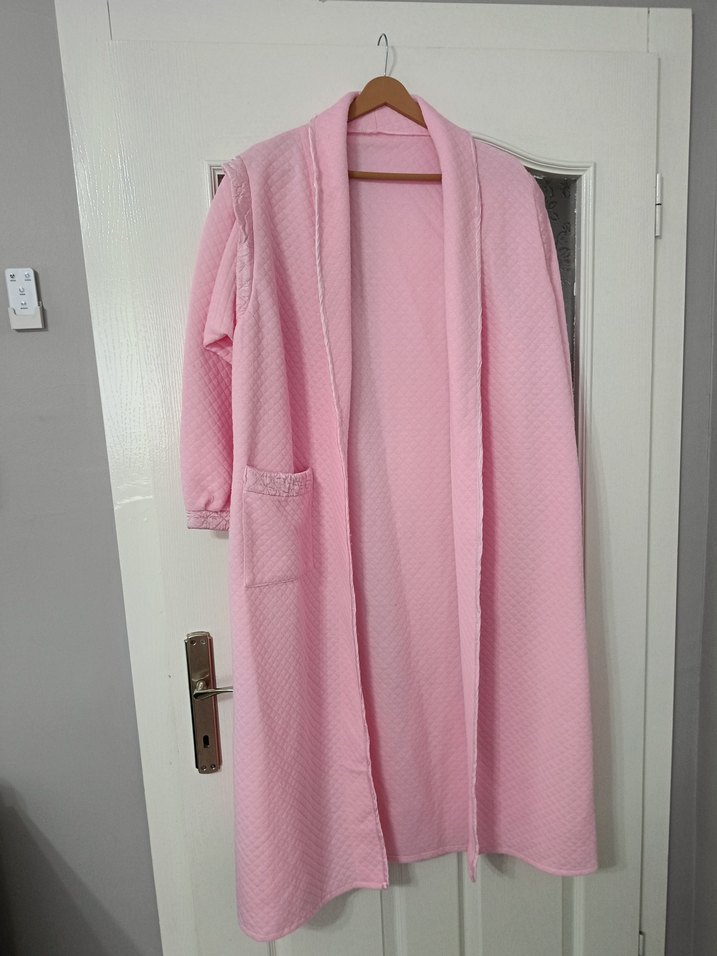 Pembe, uzun kollu, bol kesim kadın Sabahlık sıkıntısız temiz