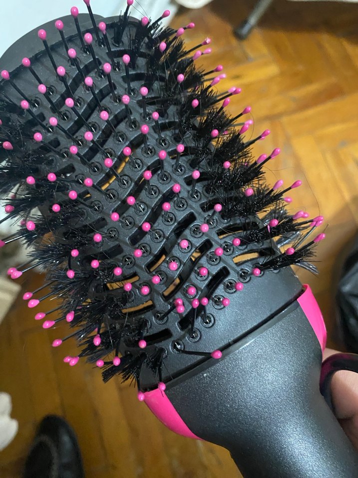 Esnek kılları ve yuvarlak uçlarıyla nazikçe açma ve şekillendirme sağlayan koyu pembe saç şekillendirici fırça. ♀️