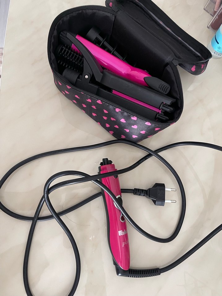 Pembe Saç Şekillendirici Seti ve Taşıma Çantası