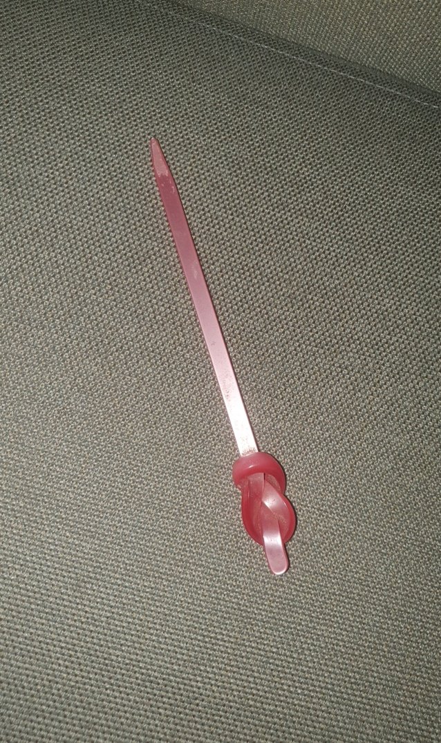 Uç kısmı düğüm detaylı, pembe renkli saç toplama kalemi