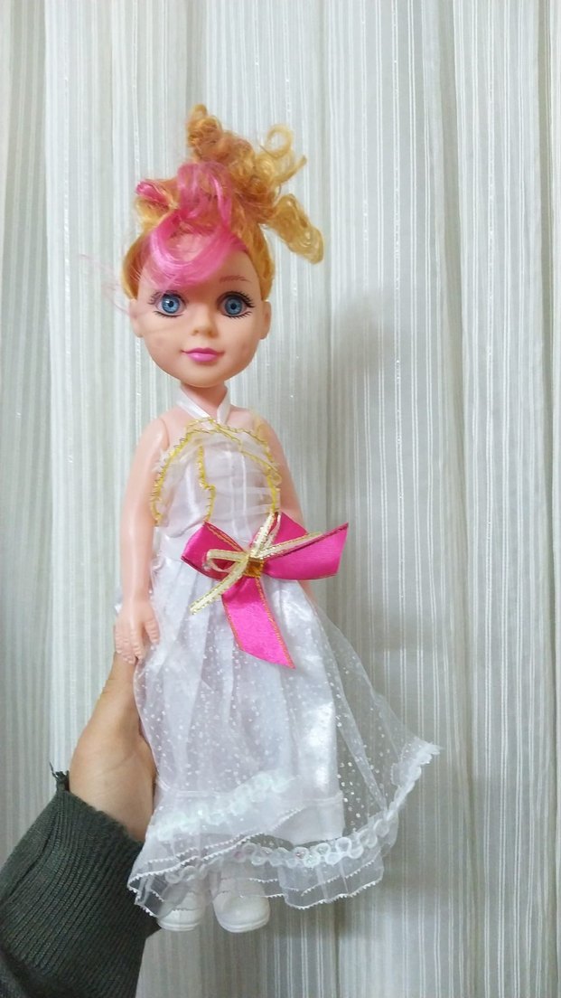 Pembe Saçlı Beyaz Elbiseli Bebek