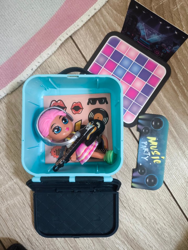 Küçük bebek, koyu tenli ve pembe saçlıdır. Renkli kıyafetler giyer ve mikrofon ile müzik temalı aksesuarlar içerir.