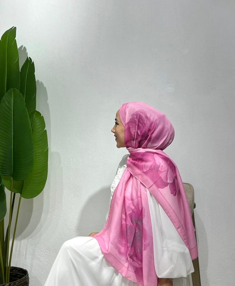 Kadınlar için pastel pembe renkte, drapeli tasarıma sahip, ipeksi dokulu şal. Kayma yapmaz soft kumaştır kolay şekıl alır