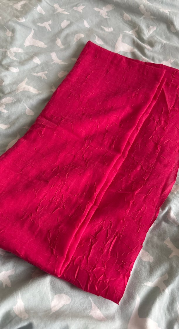 Kadın şalı, pamuklu kumaştan drapeli tasarımıyla pembe-fuşya renkte, minimalist ve şık bir görünüm sunar.