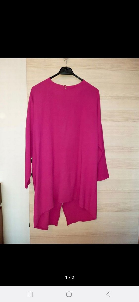 Kadınlar için pembe, salaş kesim, uzun kollu ve yuvarlak yakalı tunik. Yumuşak krep kumaştan,minimalist tarzda.