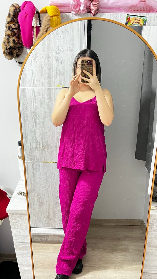 Pembe, salaş kesim, kolsuz şık takım günlük kullanıma uygundur . M giymeme rağmen bu şekilde duruyor bilginize. 1 kere giyildi .