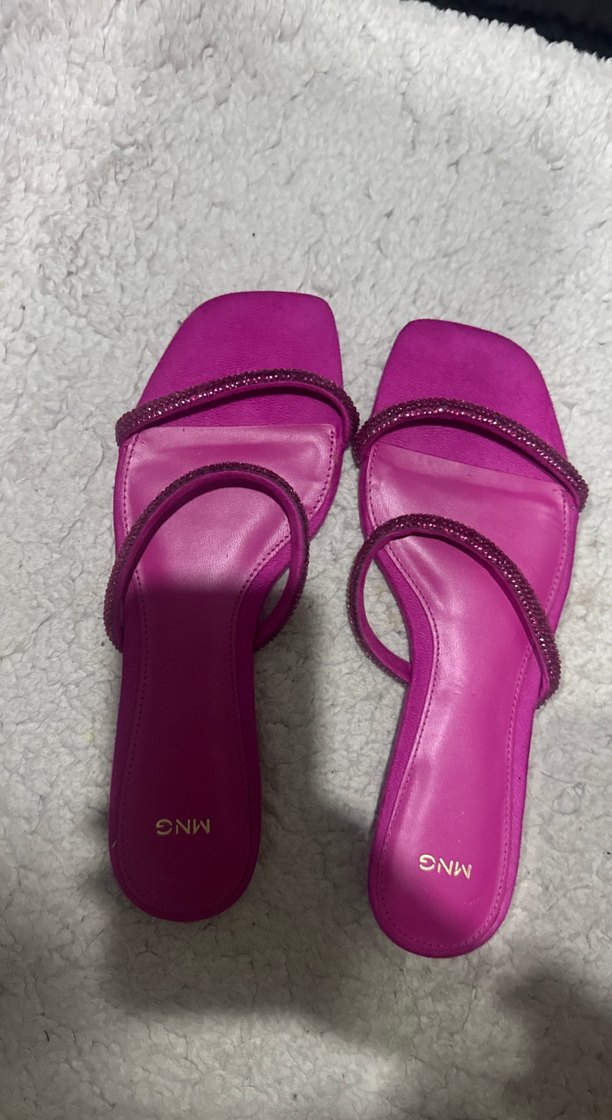 Sıfır yeni hıc gıyılmedı kusursuz Pembe sandalet tokalı bantlara sahip, parlak ve minimalist tasarımlı, romantik akşamlar için uygun bir ayakkabı.