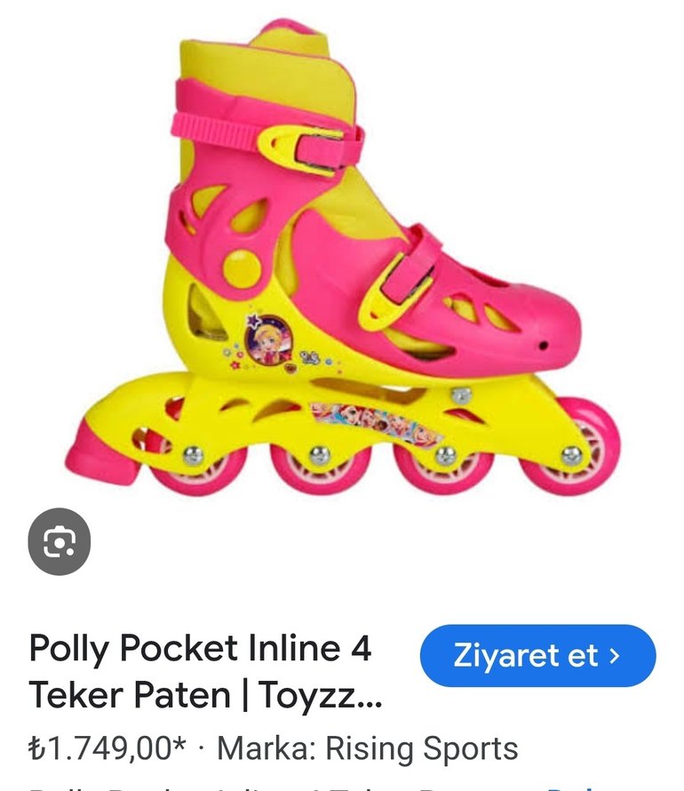 Canlı pembe ve sarı renklerde, baskılı desenli erkek inline paten. Dayanıklı plastikten üretilmiş, ayarlanabilir Velcro bantlı, spor aktiviteleri için uygun.