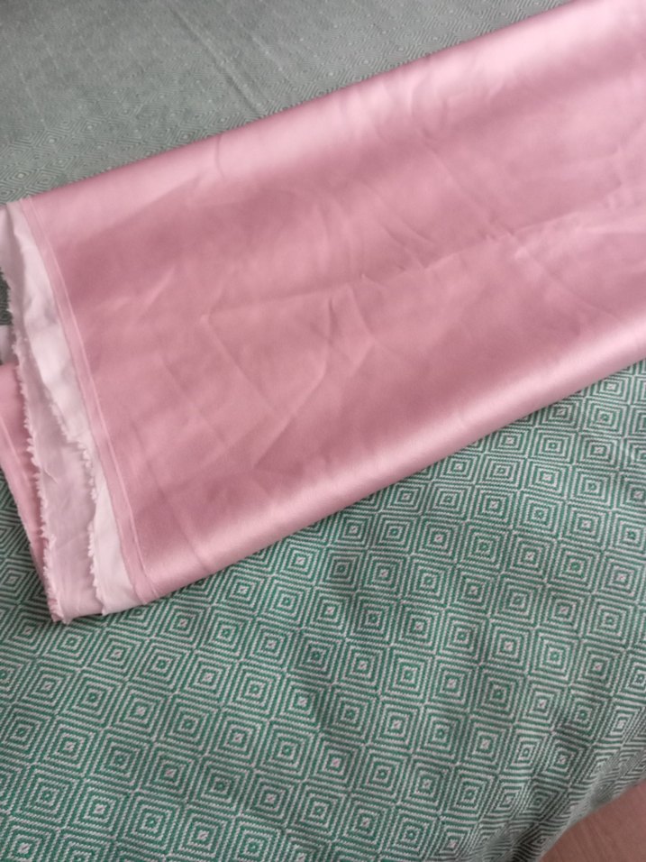 Pembe, pastel tonlarda, düz desenli, yumuşak ve ipeksi dokulu içi telalı 2 . 60 boy kumaş