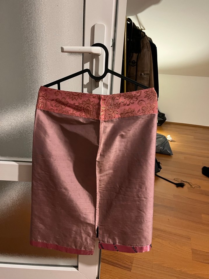 Pembe Saten Hamile Midi Etek