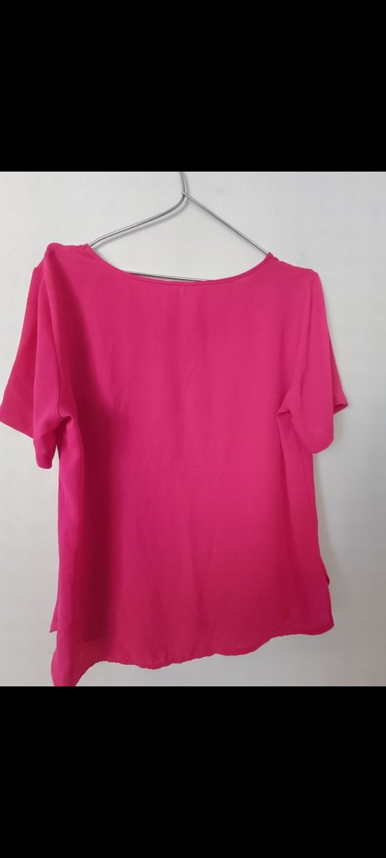 Pembe parlak renkli, saten kumaştan, kısa kollu ve düğmeli, normal midi uzunlukta, vücuda oturan hamile tişörtü. Minimalist ve romantik buluşmalar için uygun.