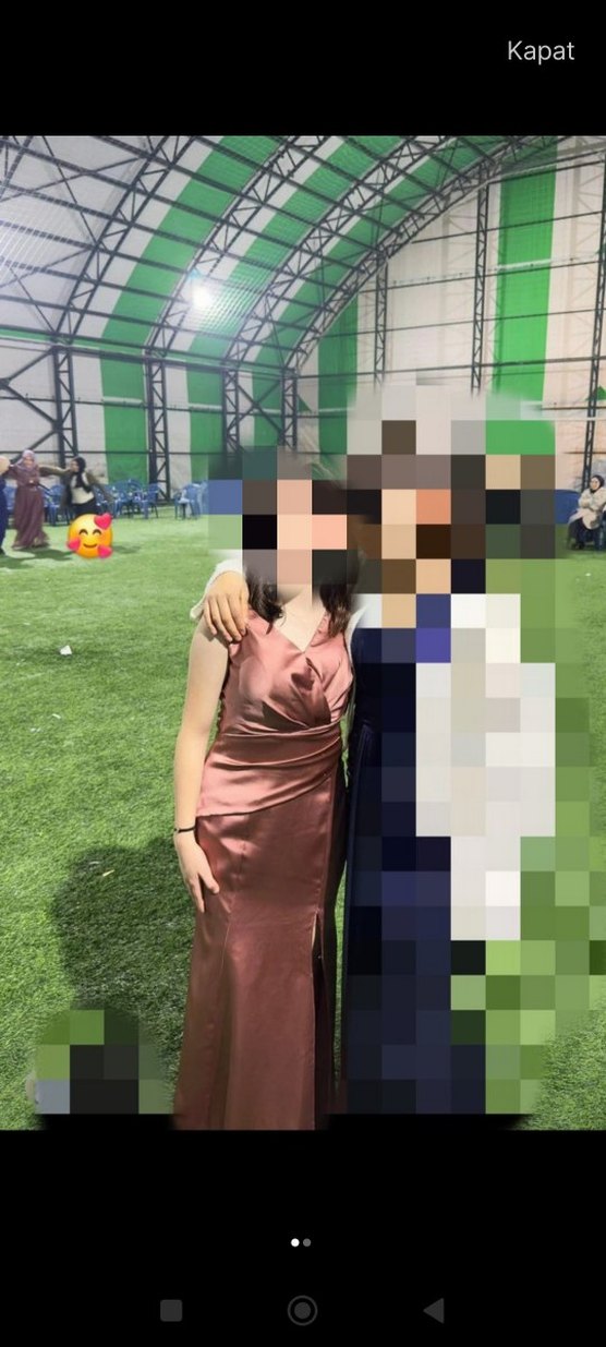 Pembe Saten V Yaka Drapeli Midi Abiye