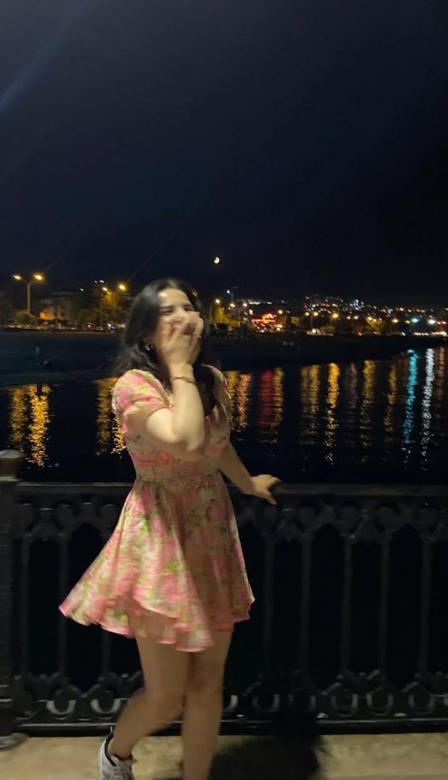 Pembe, şeffaf ve ipeksi kumaştan midi elbise, askılı ve salaş kesimdir. Tie-dye desenli, bohem ve retro tarzda, parti için uygundur.