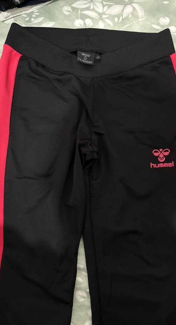 Hummel markalı, pembe şeritli ve fermuarlı detaylı, sentetik kumaştan yapılmış, spor ve sokak stili için uygun kadın eşofman altı. ♀️