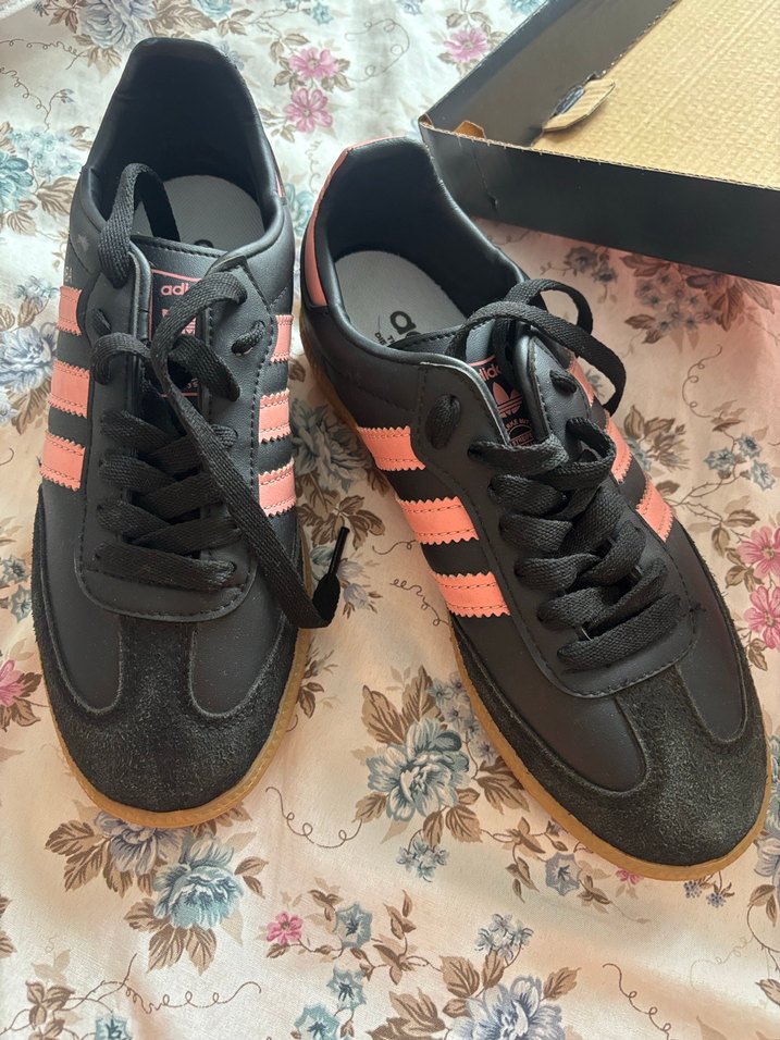 Siyah renkte, pembe şeritli, bağcıklı ve kauçuk tabanlı spor ayakkabılar. Spor sokak tarzına uygundur. Hiç kullanılmamıştır