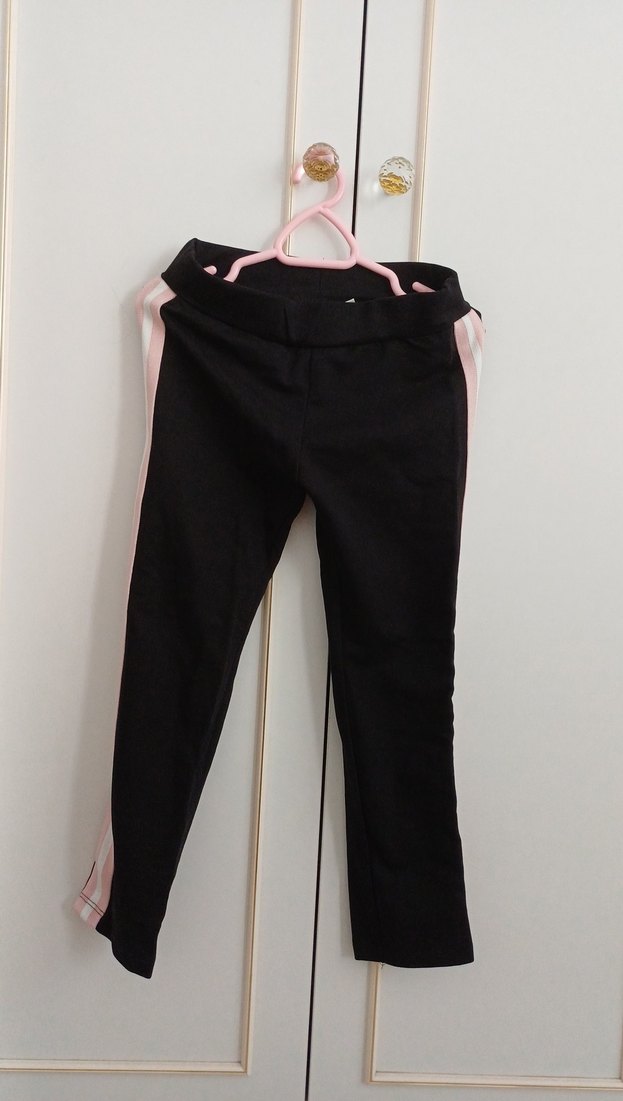 Koyu pembe şeritli siyah tayt yumuşak, sıcak dokulu. , günlük kullanıma uygun.