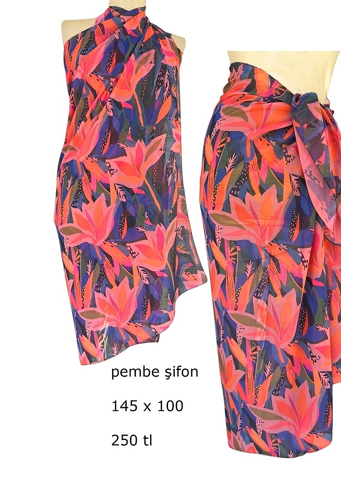 Ürün sıfır paketinde gönderilecektir. Şifon, transparan pareo. Dokusu yumuşacık ve akan bir kumaşı var. Ürünün etiketi imalattan yok, ama paketli olarak yollanacak.