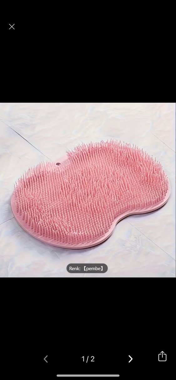 Pastel pembe renkli, yumuşak silikon dokulu, tırtıklı yüzeye sahip, desen içermeyen banyo paspası. Özel şekilli ve rahat kullanımlı.