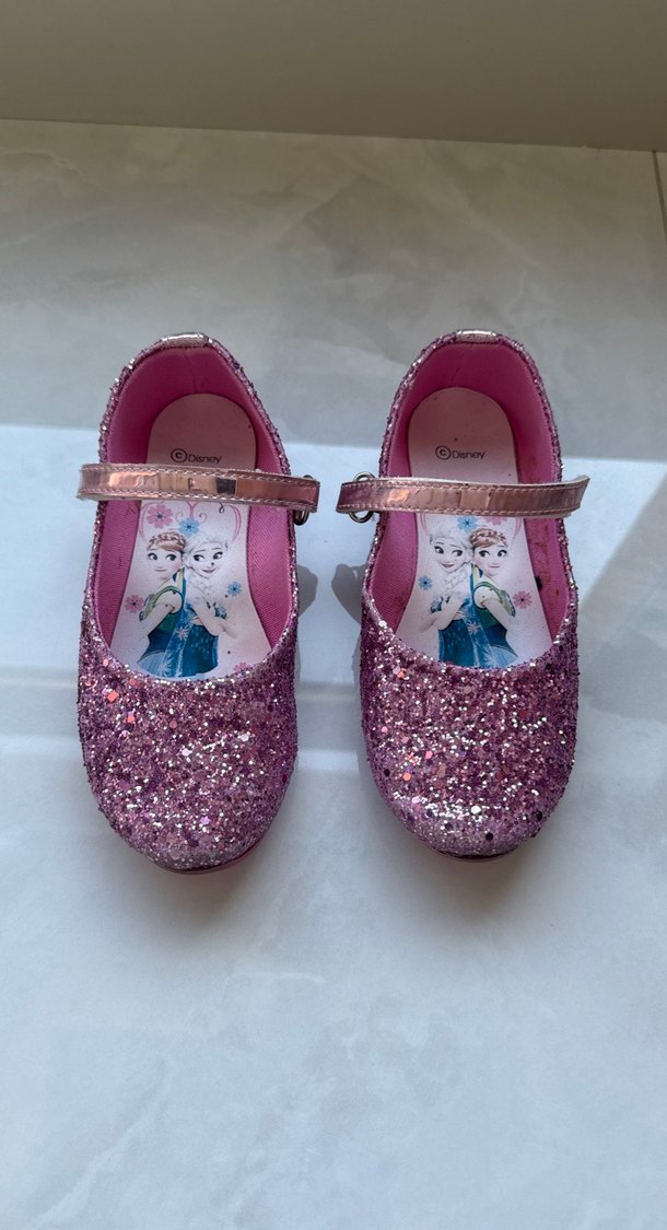 Pembe simli kız çocuk babet ayakkabı, kauçuk tabanlı ve karakter baskılı iç astarlı. Renkli ve parlak, sokak stiline uygun. ✨