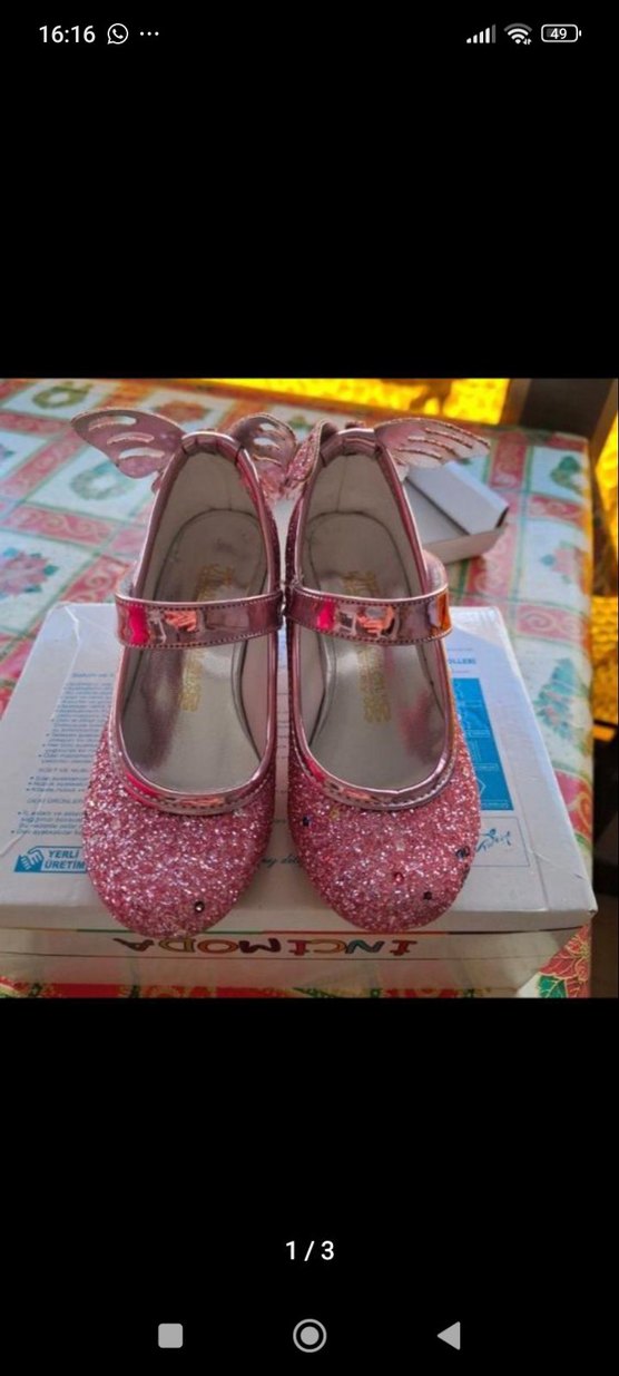 Pembe Simli Kız Çocuk Babet Ayakkabı