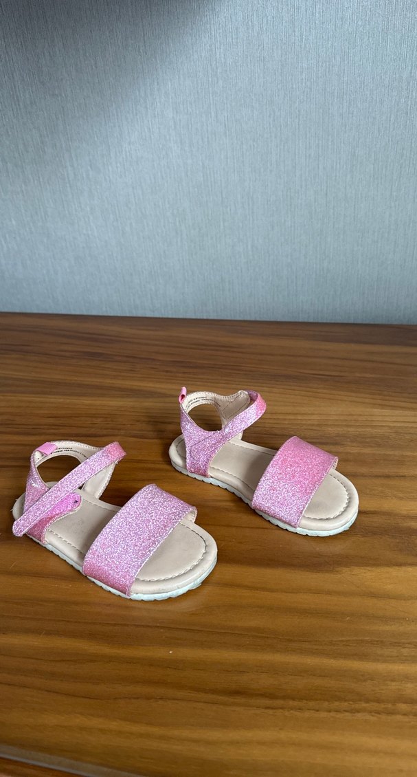 Pastel pembe simli bantlara ve yumuşak tabana sahip, rahat kullanım için kauçuktan yapılmış kız çocuk sandaletleri. ✨