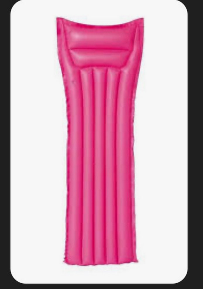 Renkli pembe şişme plaj yatağı, çocuklar için rahat destek sağlar ve yerleşik yastığı vardır. 183x69 cm Bestway marka Hiç kullanılmadı