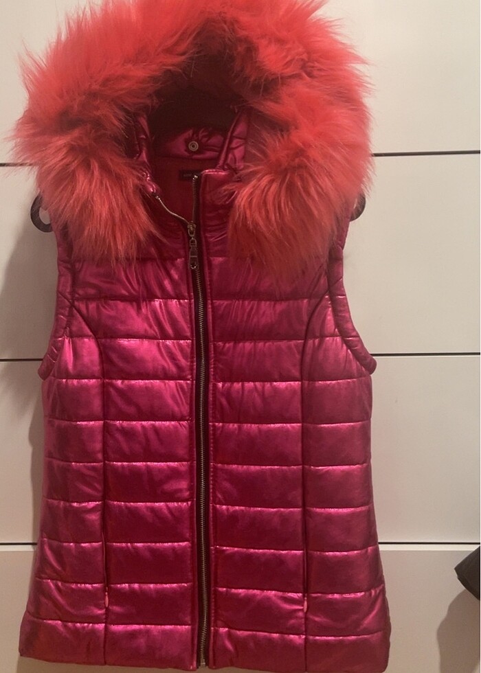 Pembe şişme tüylü Kadın yelek.1 defa giydim.38/40