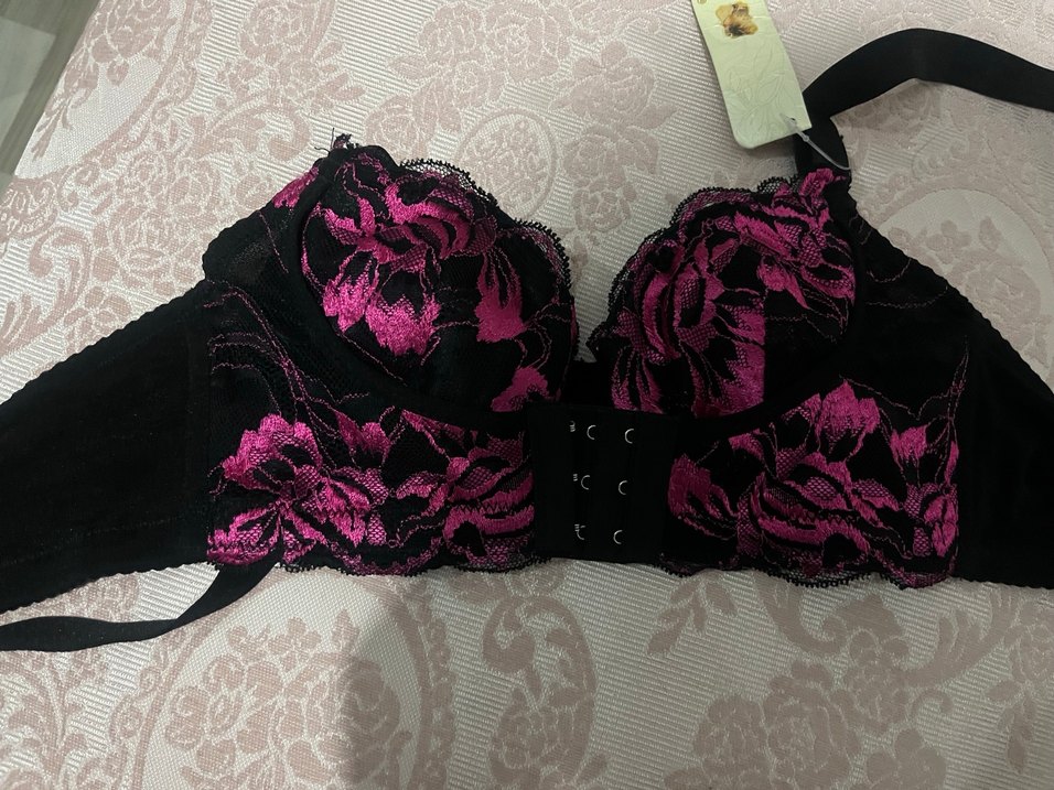 Pembe Siyah Çiçekli Gotik Sütyen