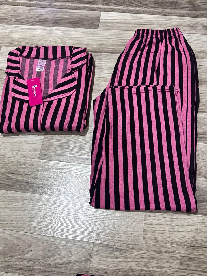 Pembe Siyah Çizgili Kadın Pijama Takımı