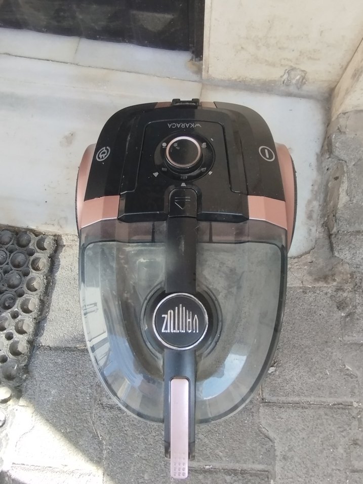 Ayarları ayarlanabilir, toz haznesi şeffaf pembe siyah elektrikli süpürge.