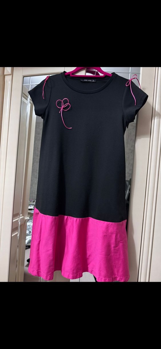 Pembe Siyah Kısa Kollu Salaş Elbise