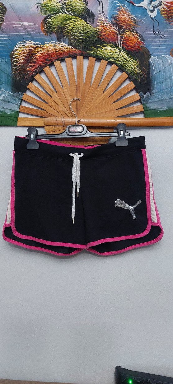 Az kullanılmış temiz 12.13 yaşa uygun beli lastikli ve bağcıklı kız çocuk şort... Puma baskılı, elastik bel bantlı, pembe siyah renkli mini spor şort. Yumuşak ve sıcak kumaştan, rahat ve şık bir tasarım sunar.
