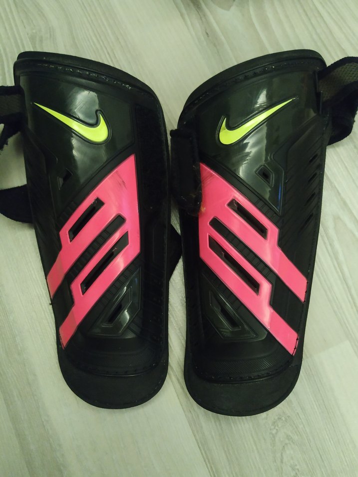 Koyu pembe ve siyah renklerde, kauçuk malzemeden yapılmış, cırt cırtlı motosiklet diz koruyucuları, sokak giyim tarzında.
